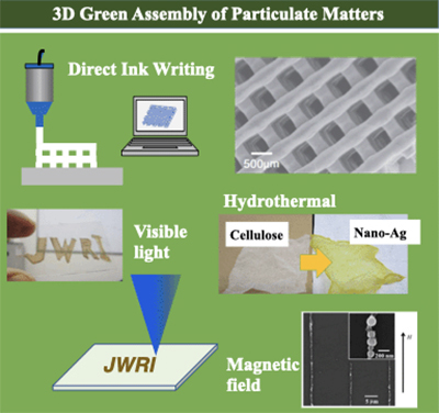 環境・エネルギー問題が地球規模で深刻化する中、本研究分野では環境負荷を大きく減らすようなグリーンプロセス技術の研究開発に取り組んでいます。特に、機能発現の要素となるナノおよびマイクロ粒子に着目し、それらのボトムアップ合成法、およびそれらをビルディングブロックとして所望の2次元、3次元形状に積み上げる造形法の開拓を進めています。さらに、本研究分野で開発されたグリーンプロセス技術を用いて、環境・エネルギー関連材料およびデバイスの創製も行っています。