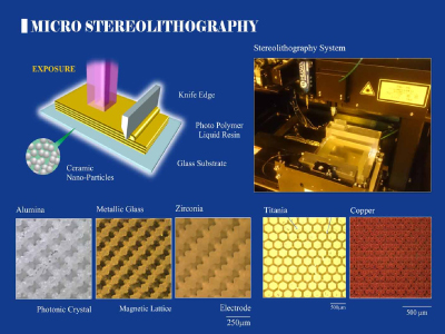 積層造形法は、任意形状の2次元断面を積み重ね、複雑形状の3次元構造を形成する先進プロセスである。本研究室では、金属やセラミック微粒子を分散した樹脂ペーストを素材とする、独創的なアディティブ・マニュファクチャリングを考案し実践している。サブストレート方式では、微粒子ペーストを平板上に塗布し、高輝度レーザ走査により断面を描画しつつ積み重ね、層間接合することで実用材料の構造体を作製する。デポジション方式では、微粒子ペーストをプラズマやガスフレームなどの高温熱流へ導入し、部材表面へ吹き付けて肉盛溶接を繰り返しながら、複合組織や凹凸模様を作製する。磁気デバイス・電力モジュール・熱コンバータ・音響モジュレータ・振動アブソーバなどのエネルギー制御構造や、流体フィルタ・研削ツール・生体インプラントなどのマテリアル制御構造の研究開発を進め、持続可能な社会発展に貢献したい。