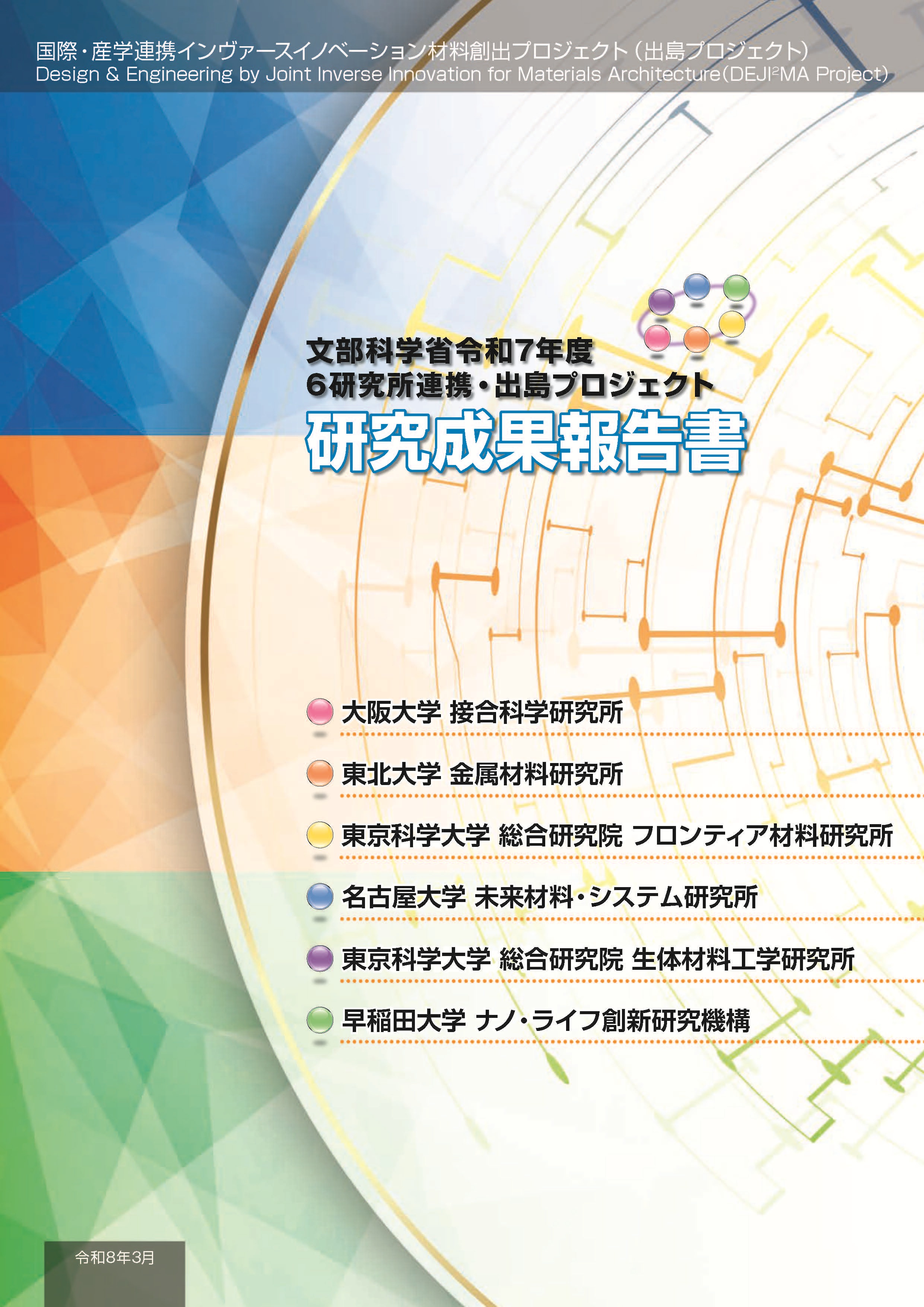 5大学6研究所連携・DEJI2MA(出島)プロジェクトでは、6研究所の連携体制を発展・強化することにより、喫緊の社会的要求が山積している3分野(バイオ・医療機器材料分野、環境・エネルギー材料分野、情報通信材料分野)の研究開発を推進しております。